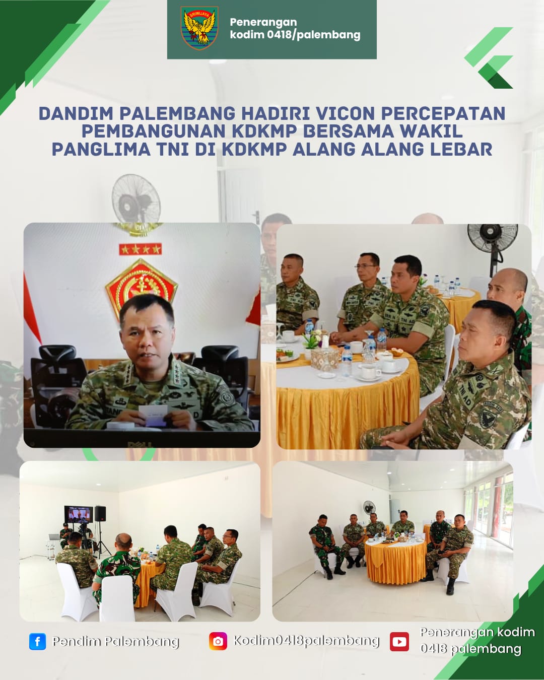 LINGKARANPOLRI.ID//Palembang— Komandan Kodim 0418/Palembang,Kolonel Arh Erik Novianto,S.sos mengikuti kegiatan video Conference (vidcon) percepatan pembangunan Koperasi Desa/Kelurahan Merah Putih (KDKMP) bersama Wakil Panglima TNI, Jenderal TNI Tandyo Budi Revita.