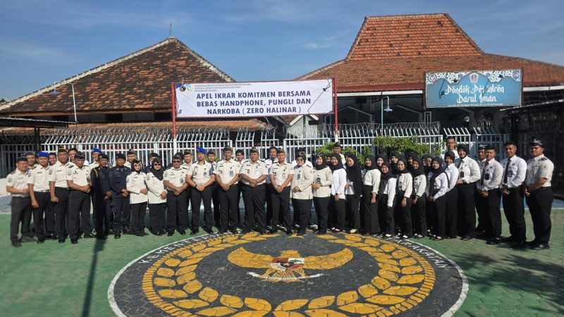 Nganjuk (20/04) – Rumah Tahanan Negara Kelas IIB Nganjuk Kantor Wilayah Direktorat Jenderal Pemasyarakatan Jawa Timur, melaksanakan kegiatan apel ikrar komitmen bersama bebas dari penyalahgunaan narkoba, penggunaan handphone ilegal, dan praktik pungutan liar (pungli) pada Senin (20/4/2026). Kegiatan ini dipimpin langsung oleh Kepala Rutan Nganjuk, Arief Budi Prasetya, sebagai bentuk penguatan integritas dan komitmen seluruh jajaran dalam menciptakan lingkungan pemasyarakatan yang bersih dan tertib.