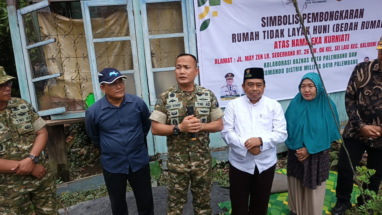 LINGKARANPOLRI.ID//PALEMBANG – Kodim 0418/Palembang berkolaborasi dengan Badan Amil Zakat Nasional (BAZNAS) Kota Palembang melaksanakan kegiatan simbolis pembongkaran Rumah Tidak Layak Huni (RTLH) milik warga bernama Eka Kurniawati, Jumat (24/4/2026).